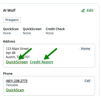 A customer must have a full address to run a QuickScreen or Credit Report!