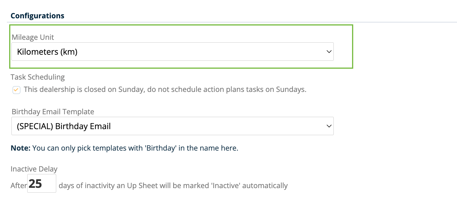 Dealerships can now configure their account to display vehicle mileage in kilometers (km) across the platform. This ensures consistency for markets and customers who use the metric system.