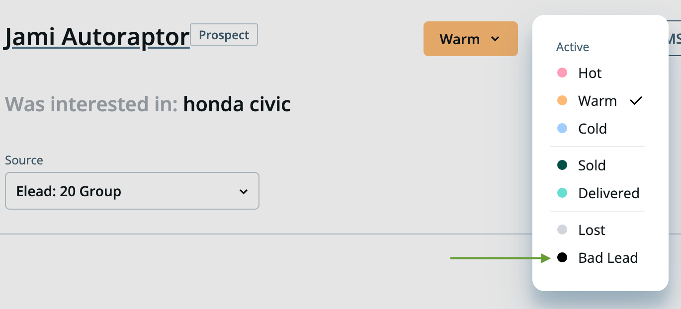 We’ve added a new Bad Lead status to help you more accurately measure performance when dealing with unusable leads.