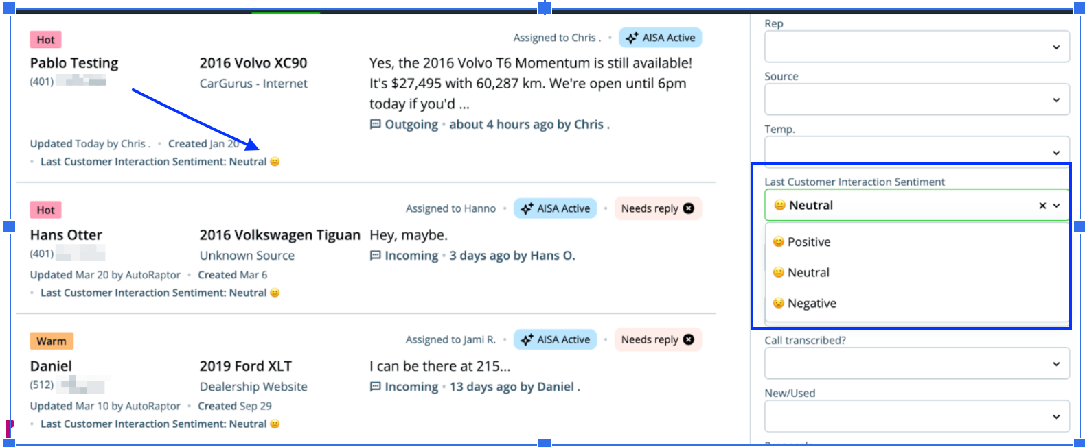 Filter Leads by Customer Sentiment